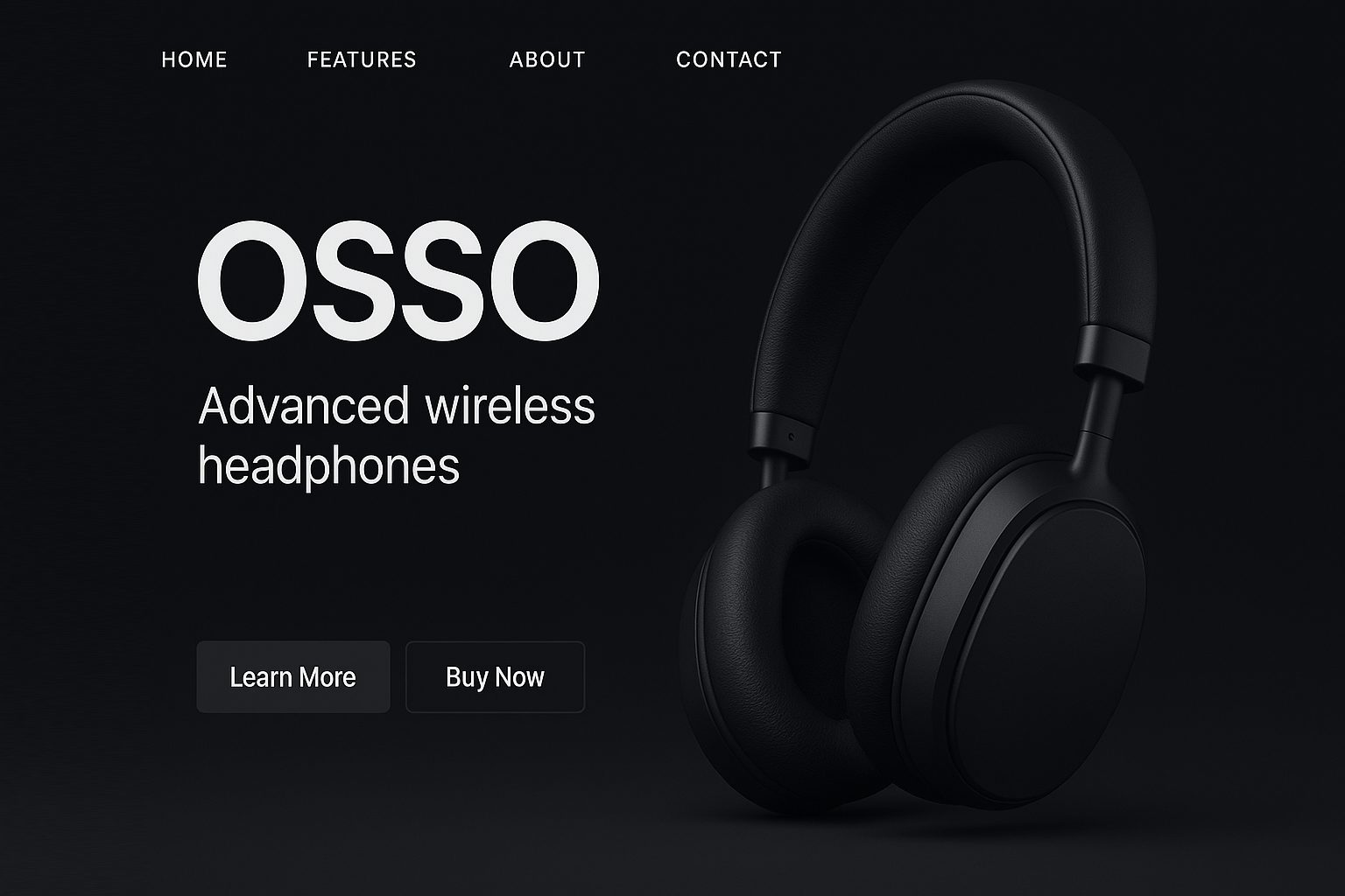 Create a modern ladning page for OSSO. A new set of headphones. Use attached images and text. Make it dark mode.